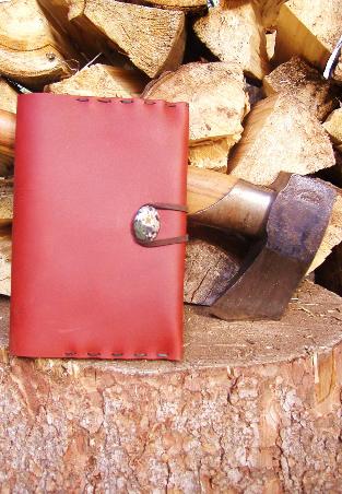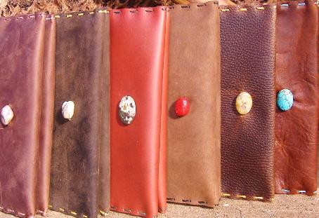 | One-of-a-Kind Cold Mountain Kindle Covers are handcrafted with natural toned, oil tanned cow hide accented with a complimentary colored gemstone bead and waxed linen thread. |